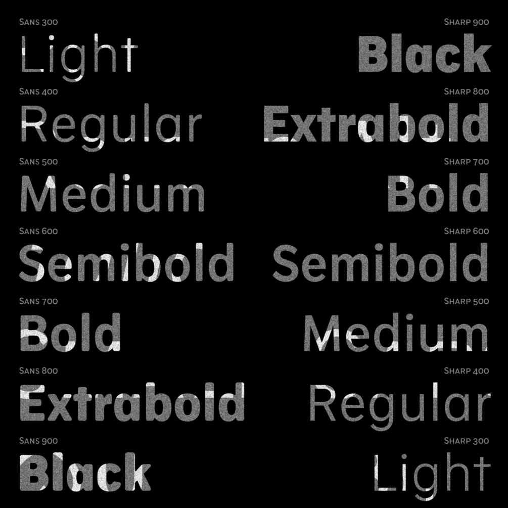 • 7 weights (Light, Book, Medium, Semibold, Bold, Extrabold, Black)