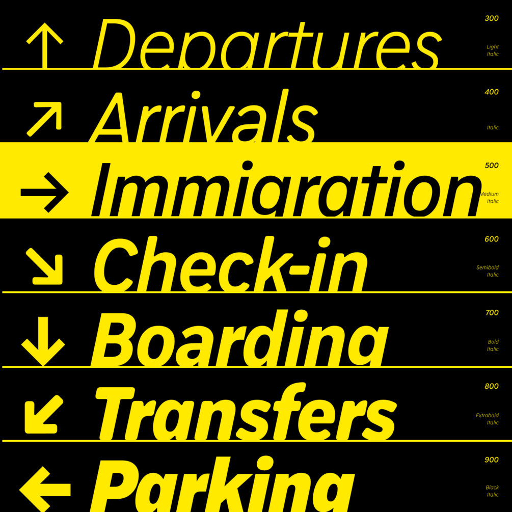 - 7 weights (Light, Book, Medium, Semibold, Bold, Extrabold, Black)